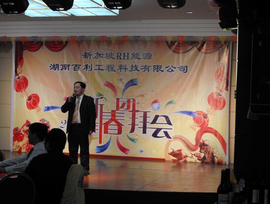團拜會 在歡快的歌舞聲中拉開了序幕,“吉祥謠”、“好運來”、“和諧中國”等一個個精彩節(jié)目贏得在場員工們陣陣掌聲。會上公司總裁、黨委書記肖立明和新加坡RH 能源集團執(zhí)行董事王立言分別致新春賀辭和發(fā)表感言。我們堅信在新的一年里,在公司董事會、經營班子領導下,在全體員工恪盡職守、辛勤工作下,百利的明天會 更美好!